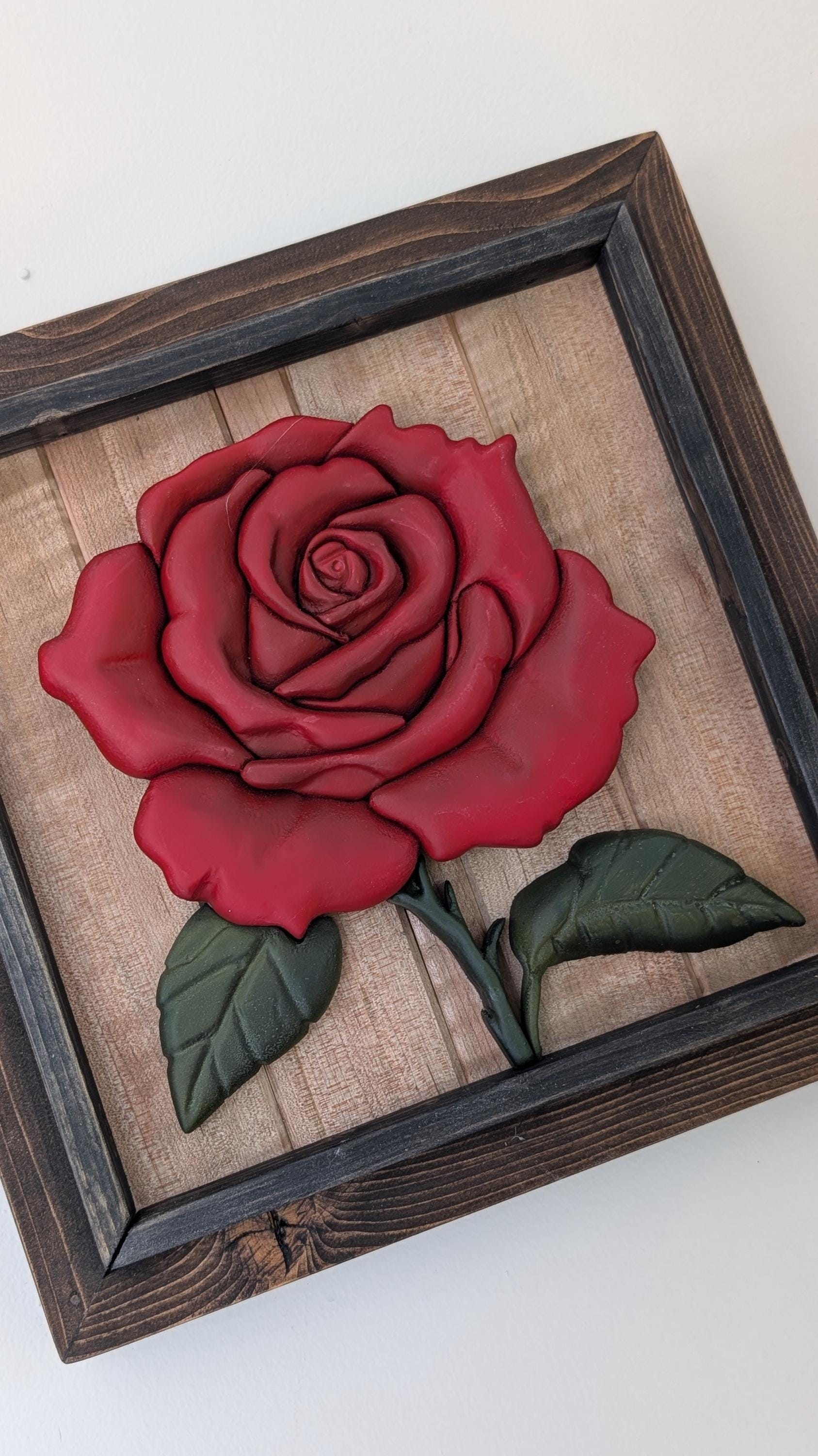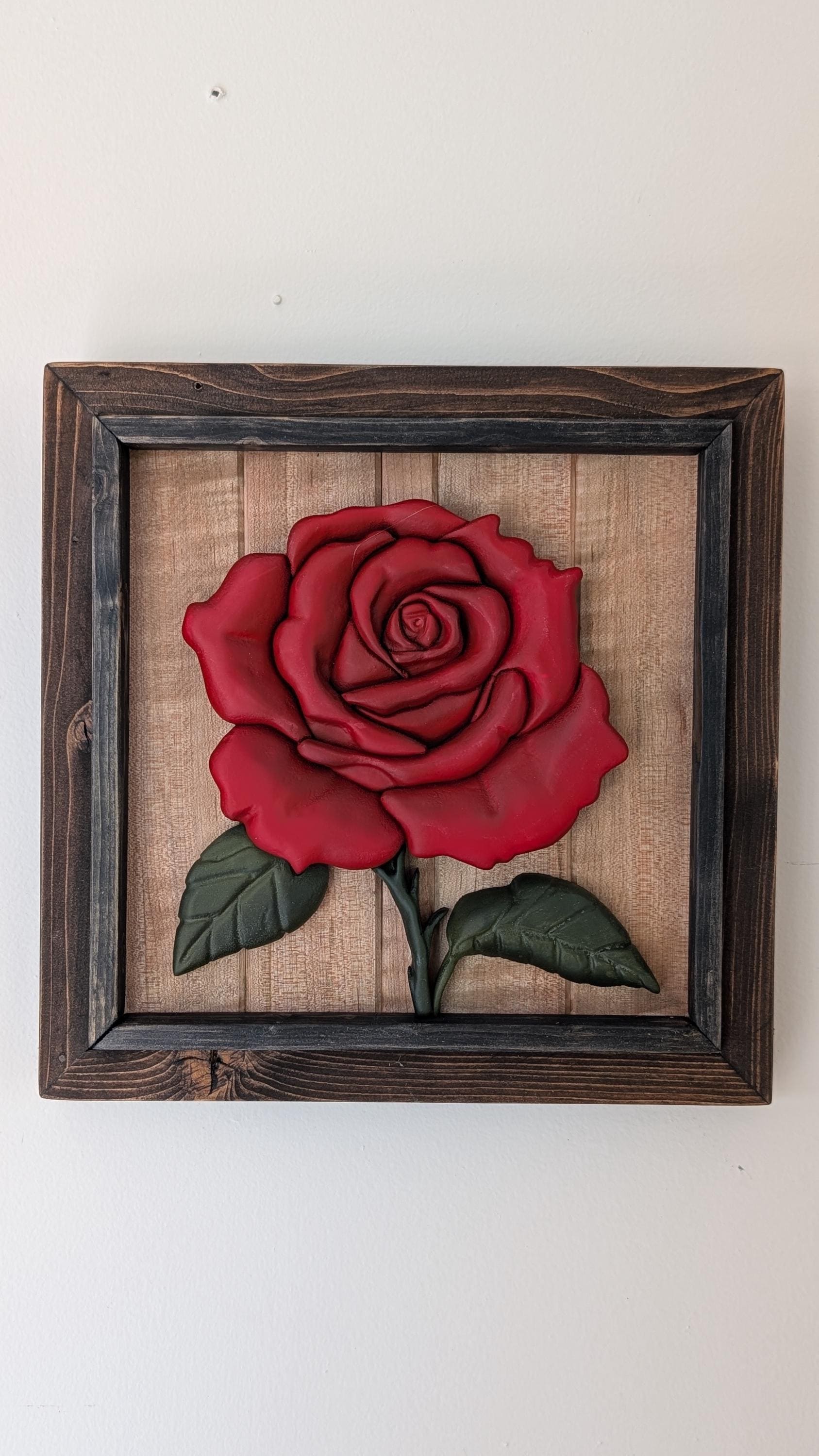Timeless, romantic, and richly detailed—this 3D carved wood rose brings the elegance of nature to your walls in a truly unique way. Hand-carved and painted with care, the rose blooms with subtle dimension and artistic texture, set against a handcrafted maple mosaic backing that adds depth and natural warmth.