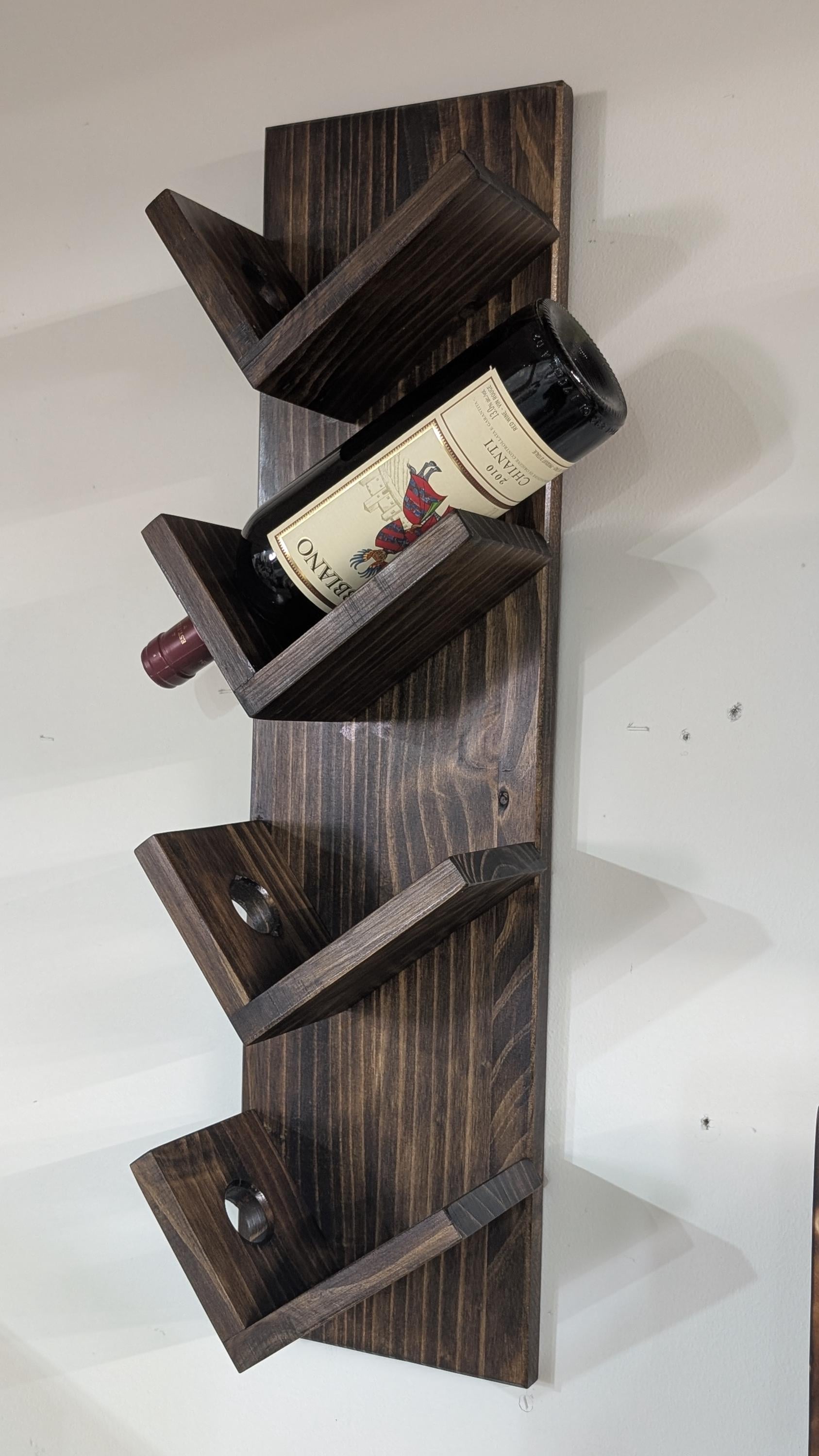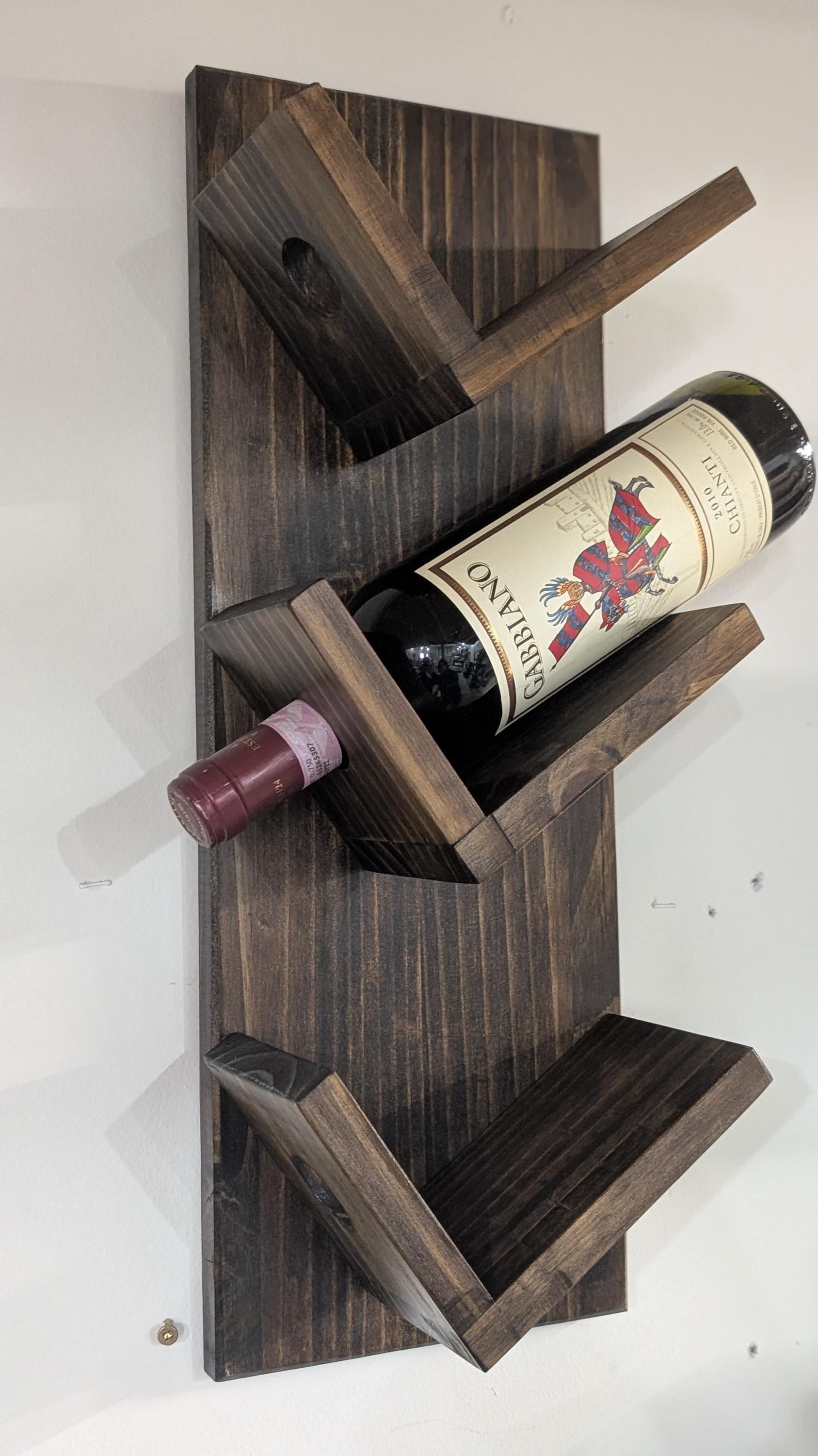 Showcase your favorite wines with style and ease using this handcrafted wall-mounted wood wine rack—the perfect blend of functional storage and elegant display. Crafted from solid wood with a natural finish, it’s designed to securely hold between 2 and 5 bottles, depending on your chosen size.