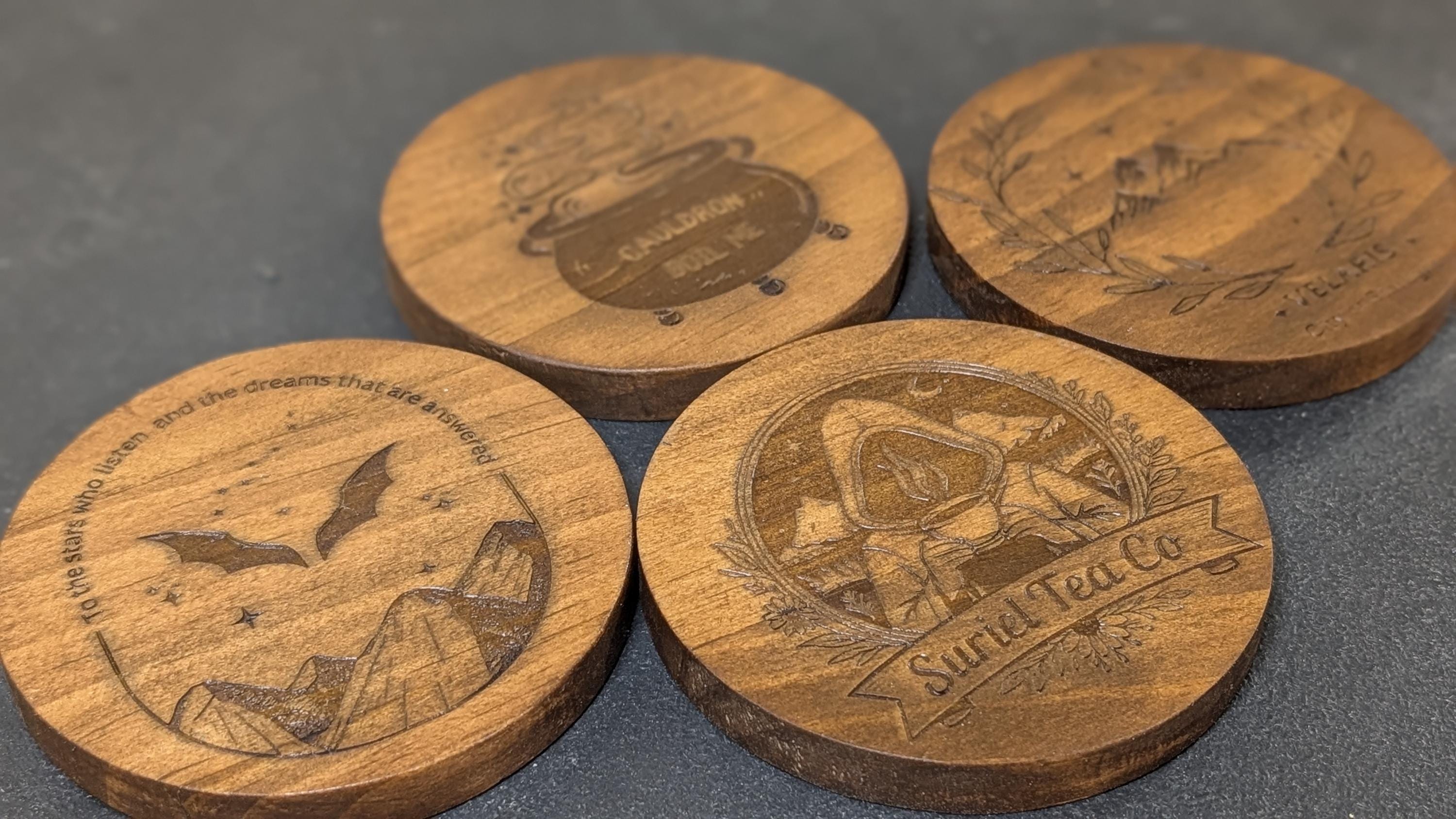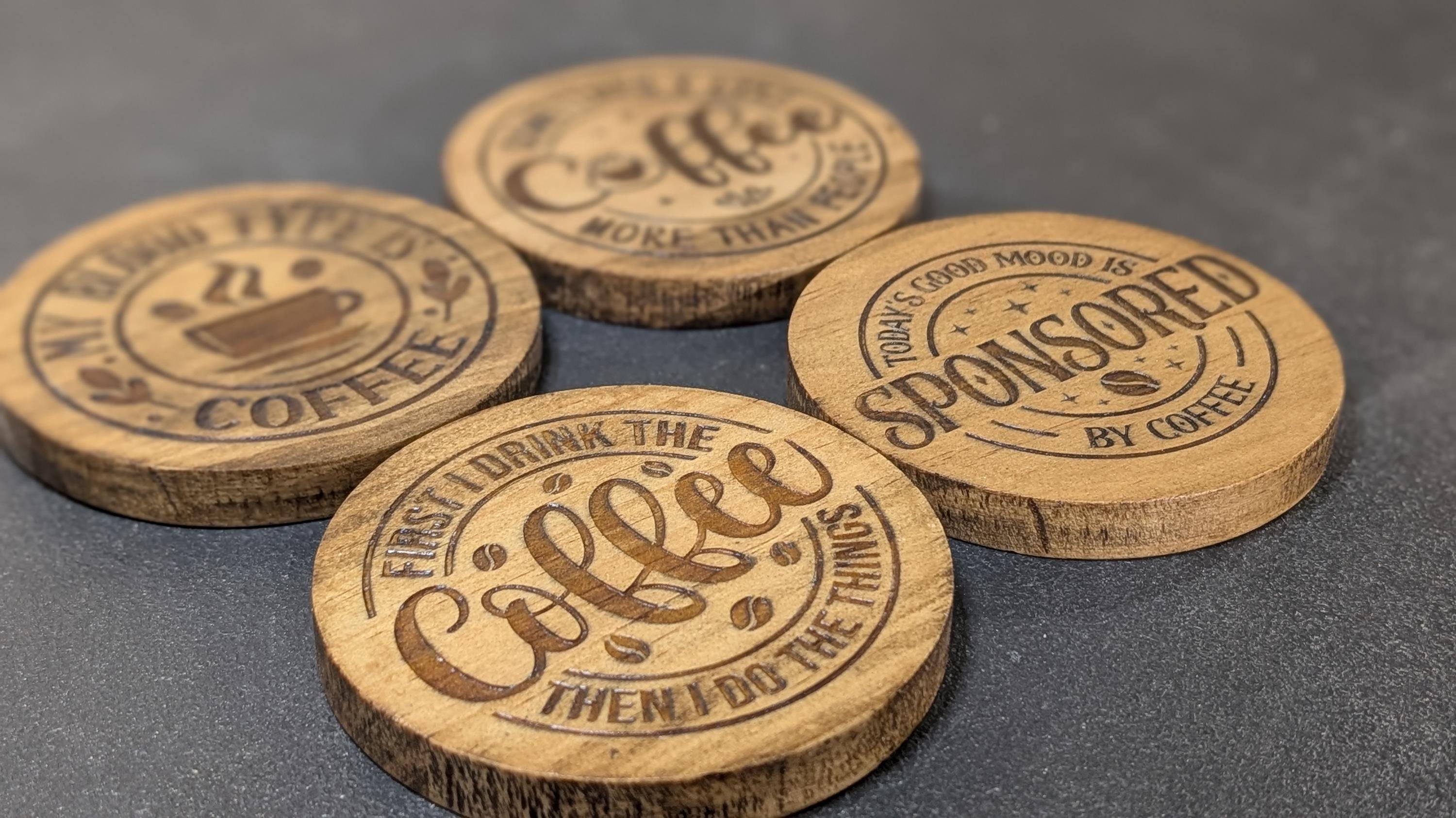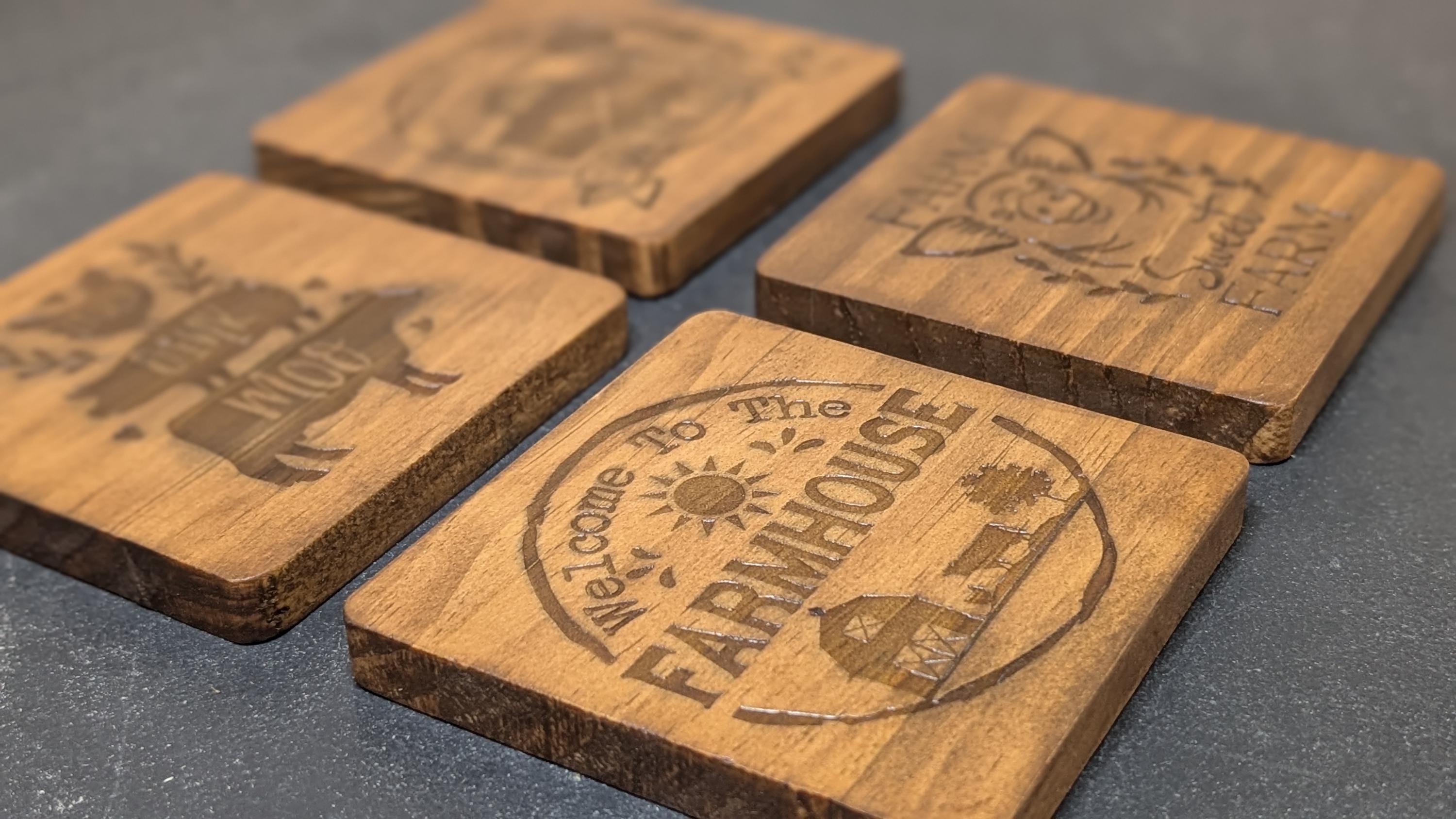Protect your surfaces in style with this set of 4 engraved wooden coasters – a perfect blend of function and personality! Each coaster is made from quality wood and laser-engraved with your choice of design, making them both durable and decorative.