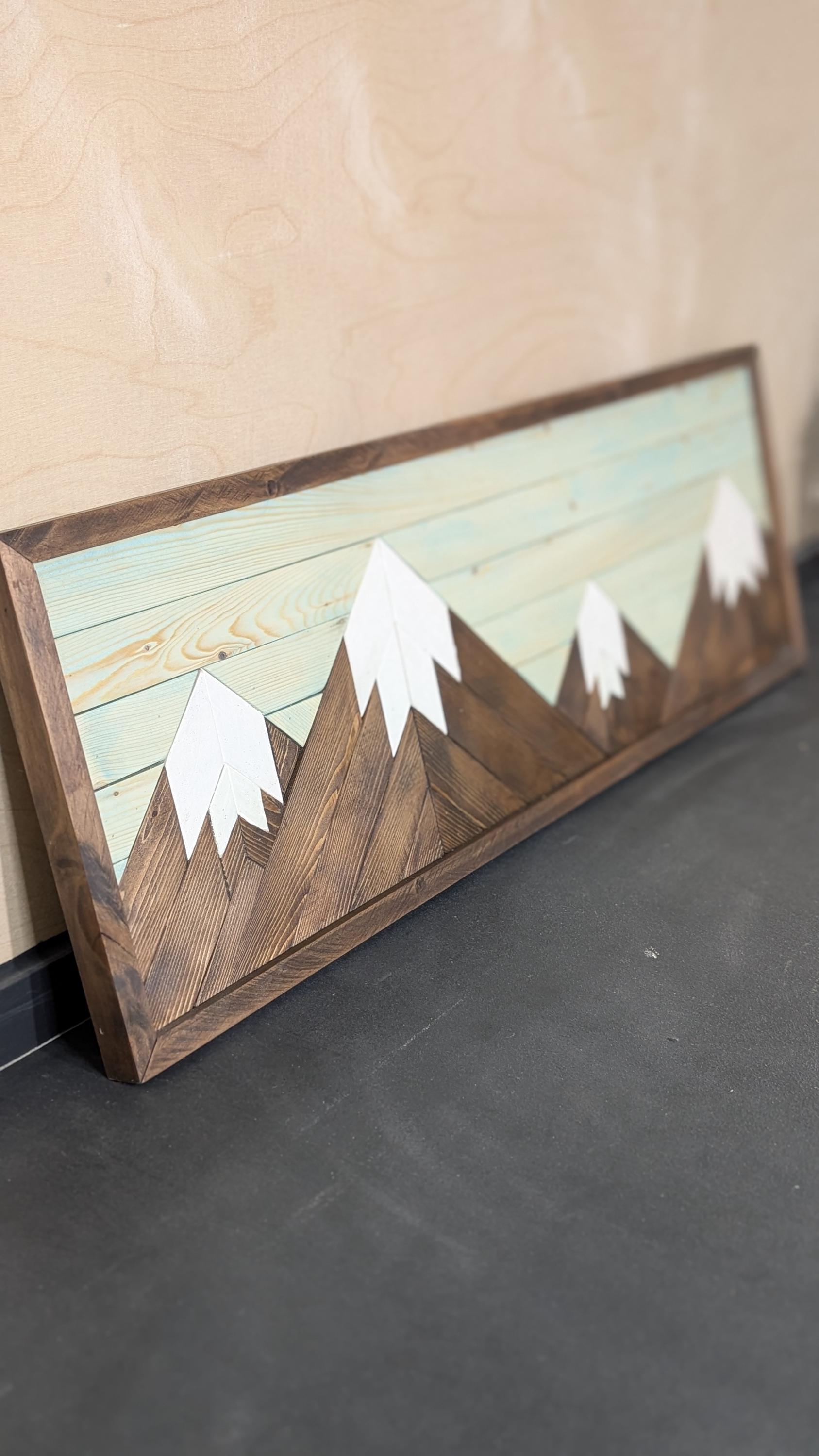 Bring the beauty of the outdoors into your home with this handcrafted wooden mountain mosaic—a stunning blend of art and function. Designed with natural wood tones and detailed geometric craftsmanship, each piece captures the rugged charm of the mountains while offering a cozy space to display your favorite mugs.