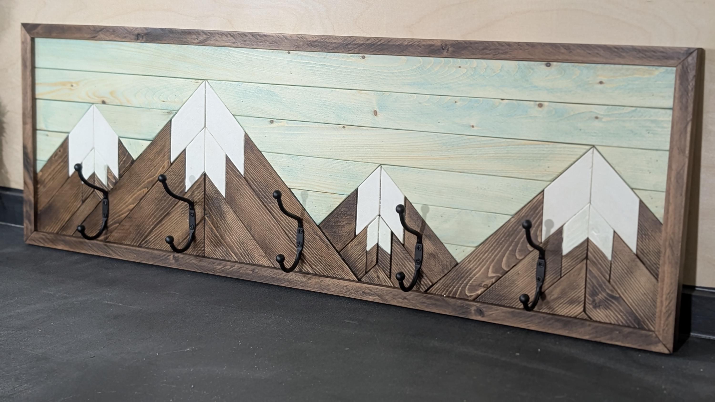 Bring a touch of the mountains into your home with this handcrafted Wooden Mountain Mosaic Coat Rack — a perfect balance of artistry and function. Each piece is thoughtfully designed with natural wood textures and layered geometry, creating a stunning landscape that doubles as practical wall décor.